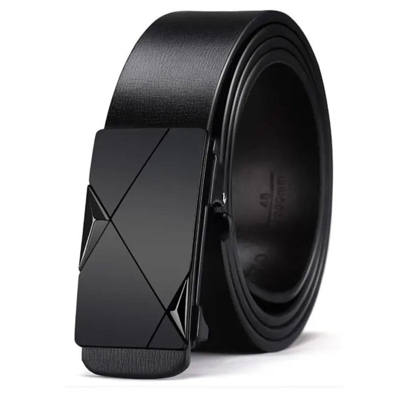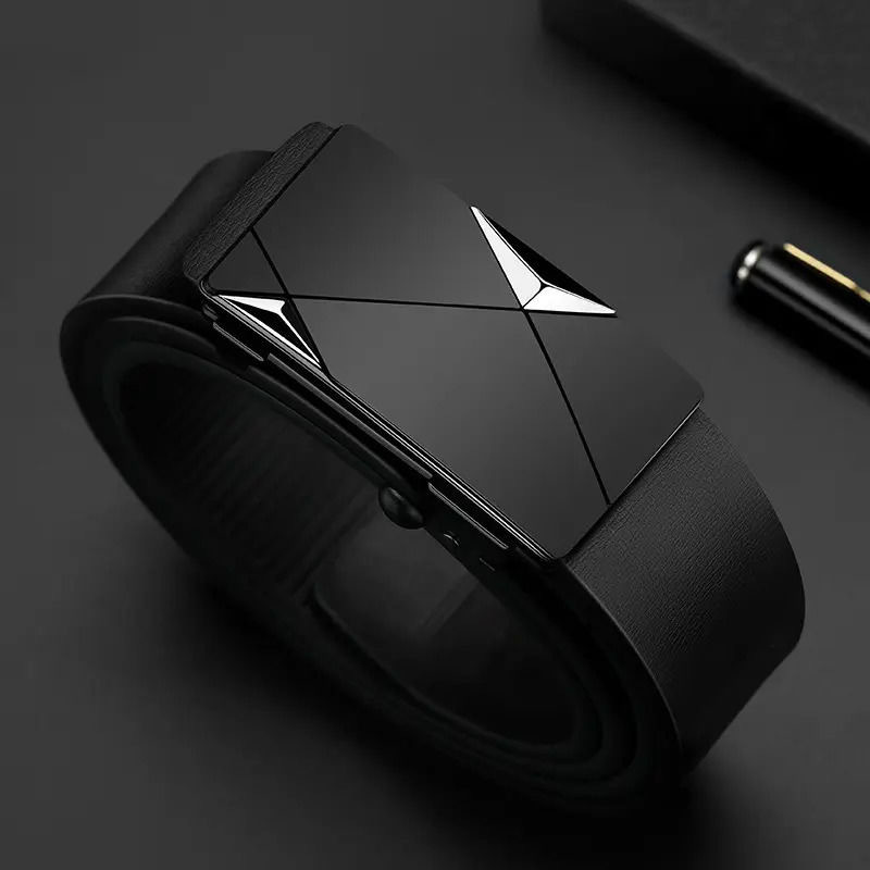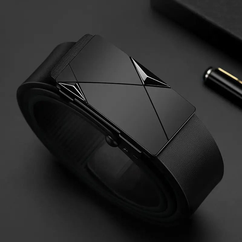 洗練された幾何学模様のバックルが特徴的なメンズベルトです。