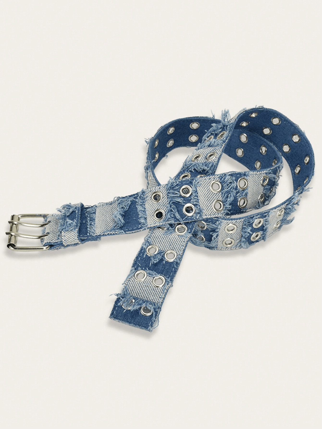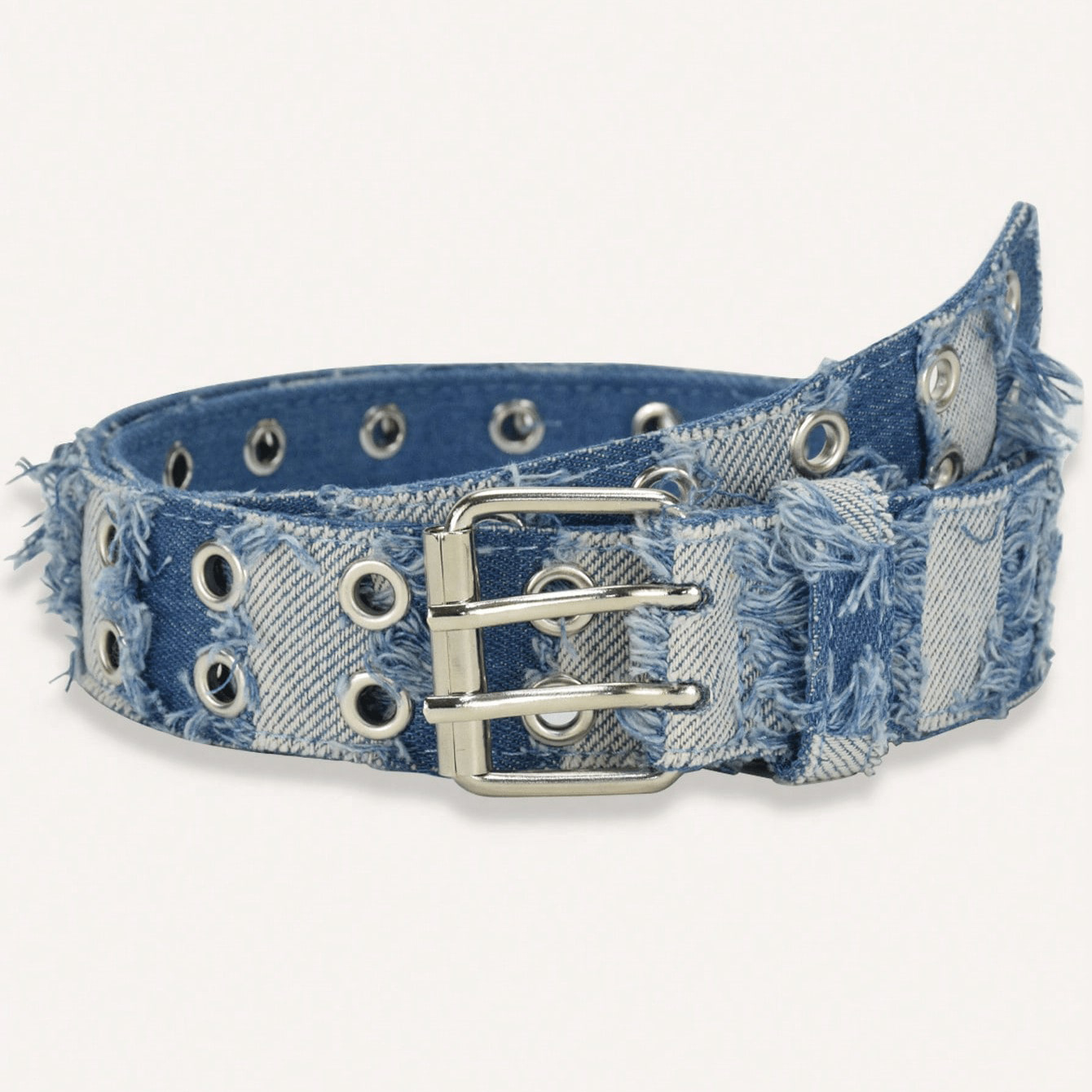 ダメージ加工を施したデニム生地が特徴的なメンズベルトです。