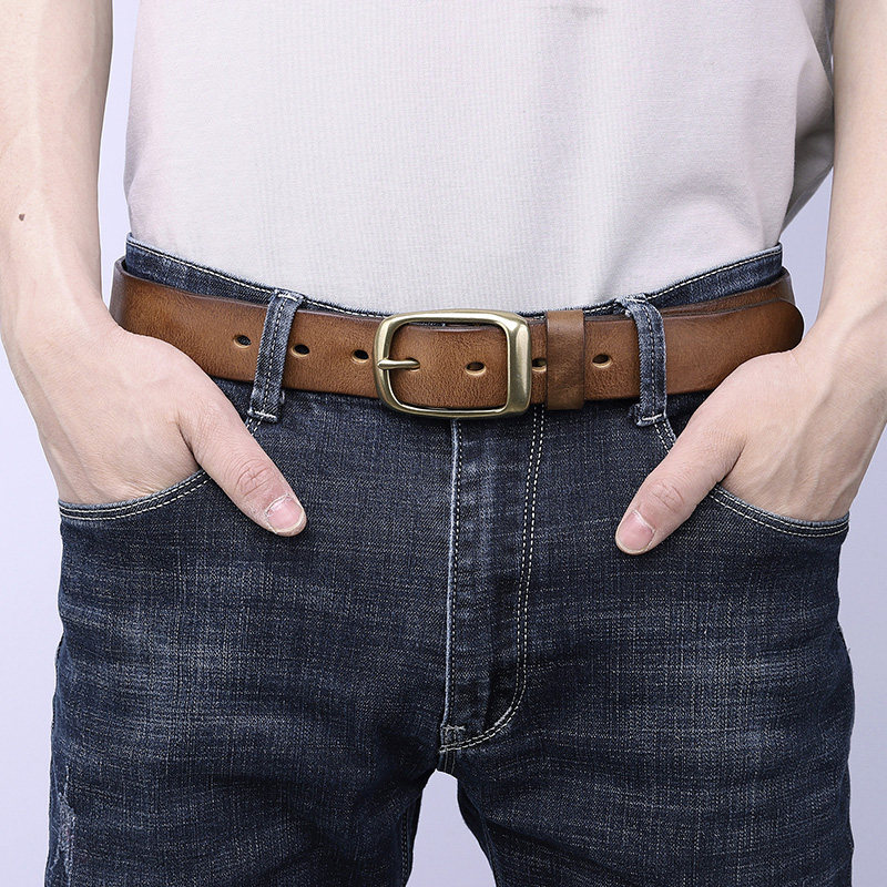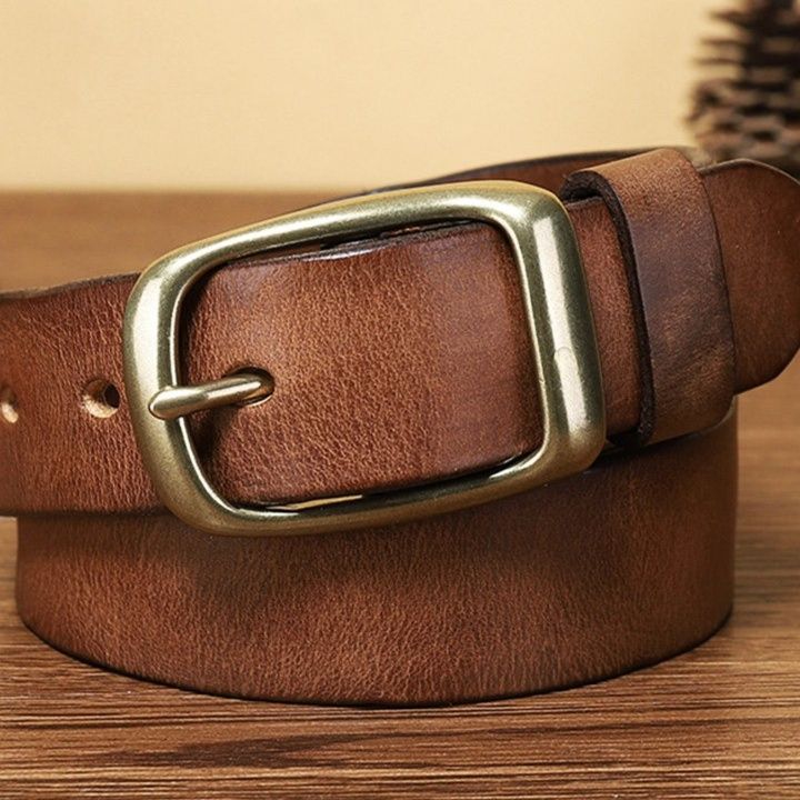 上質な革を使用したメンズベルトです。 真鍮製のピンバックルが重厚感を演出し、ビジネスからカジュアルまで幅広いシーンで活躍します。 厚みのある本革は使い込むほどに風合いが増し、経年変化を楽しめます。 シンプルなデザインで飽きが来ず、長くご愛用いただける一本です。 ベルト穴は複数設けられており、サイズ調整も簡単に行えます。 日常使いに最適な実用性の高いアイテムです。