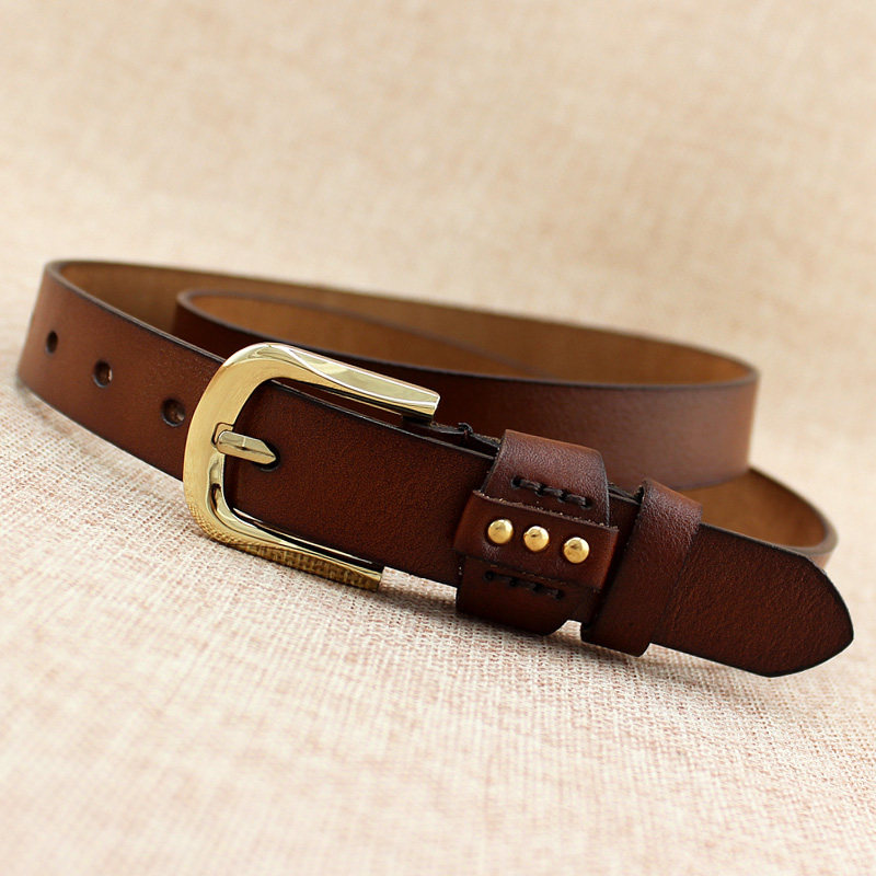 上質な革を使用したメンズベルトです。 細身のデザインでスタイリッシュな印象を演出し、ビジネスからカジュアルまで幅広く活躍します。 バックル部分には真鍮素材を採用し、ベルト通し部分には装飾的な鋲をあしらいました。 柔らかな革の質感と丁寧な縫製が特徴で、長くご愛用いただけます。 シンプルながらも洗練されたデザインは、どんな装いにも合わせやすく、大人の男性にふさわしい逸品です。