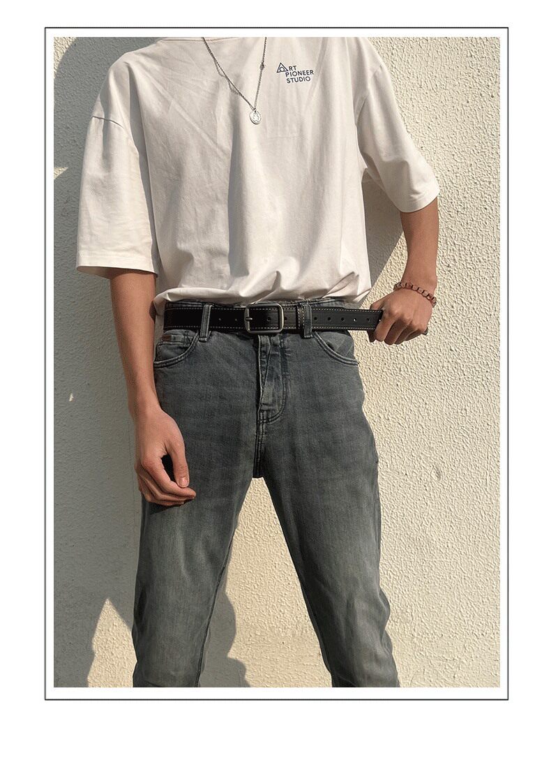 上質な革を使用したメンズベルトです。 ベルト全体に施されたコントラストステッチが洗練された印象を演出します。 幅約3.3センチメートルの程よい太さで、カジュアルからビジネスまで幅広いスタイルに対応。 シンプルなピンバックル仕様で着脱も簡単です。 革の質感と丁寧な縫製が長くご愛用いただける一品となっております。